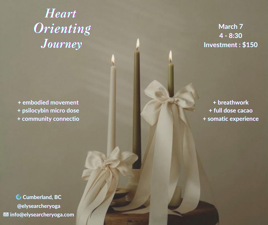 This gentle heart remembering will harness the openness each one of us is searching for. Expect a brief history of cacao elixir and Its healing technology, optional micro dose, somatic experiencing exercises (such as pendulation & titration), meditation, intuitive movement, and pranayama breathwork.